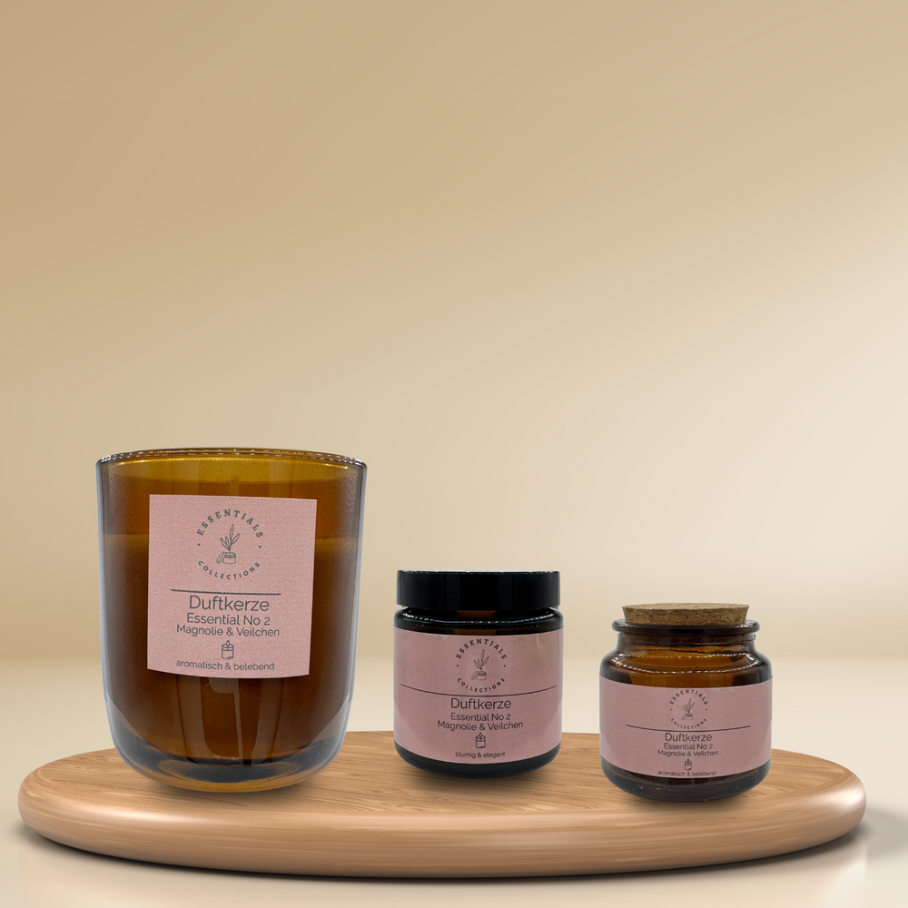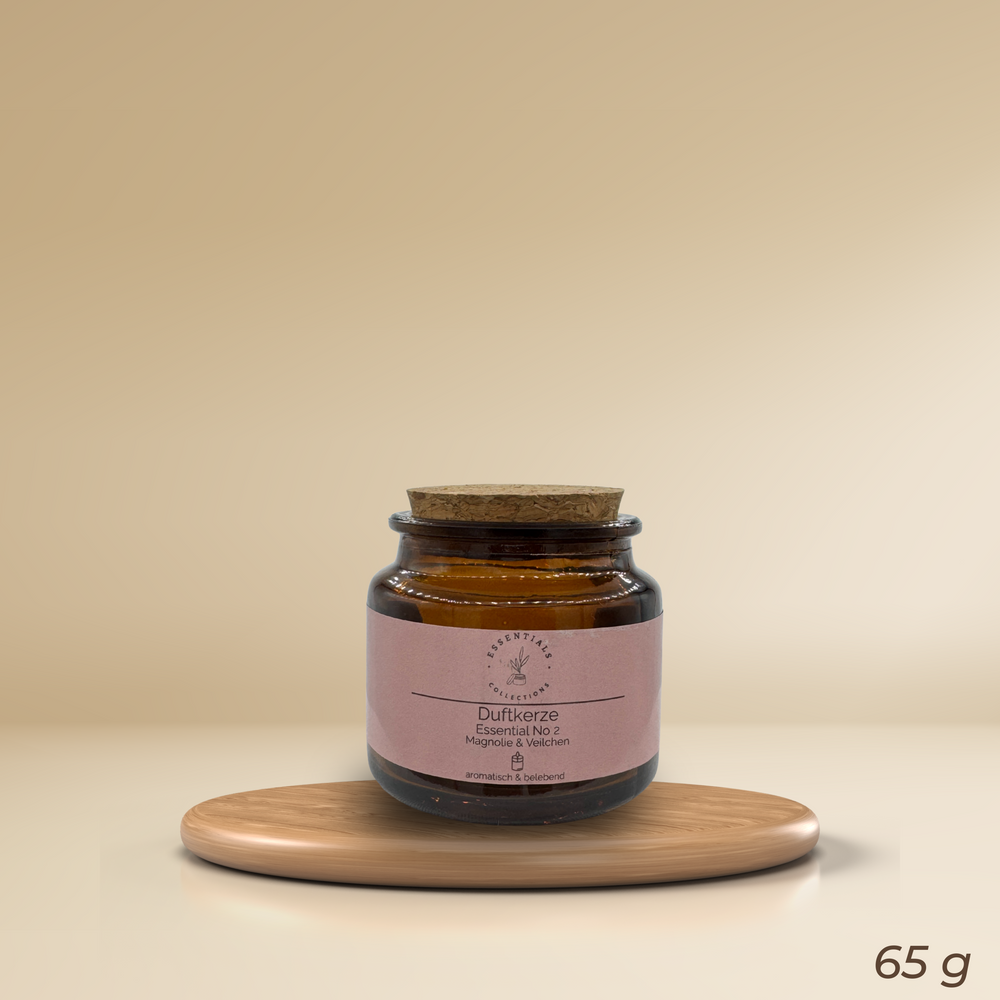 Erfülle deinen Raum mit der sanften Eleganz von Essential No 02– Magnolie & Veilchen, einer handgegossenen Duftkerze aus reinem Sojawachs. Die cremig-blumige Süße der Magnolie verbindet sich mit der pudrig-feinen Note des Veilchens zu einem dezent floralen Dufterlebnis, das eine warme, beruhigende Atmosphäre schafft.