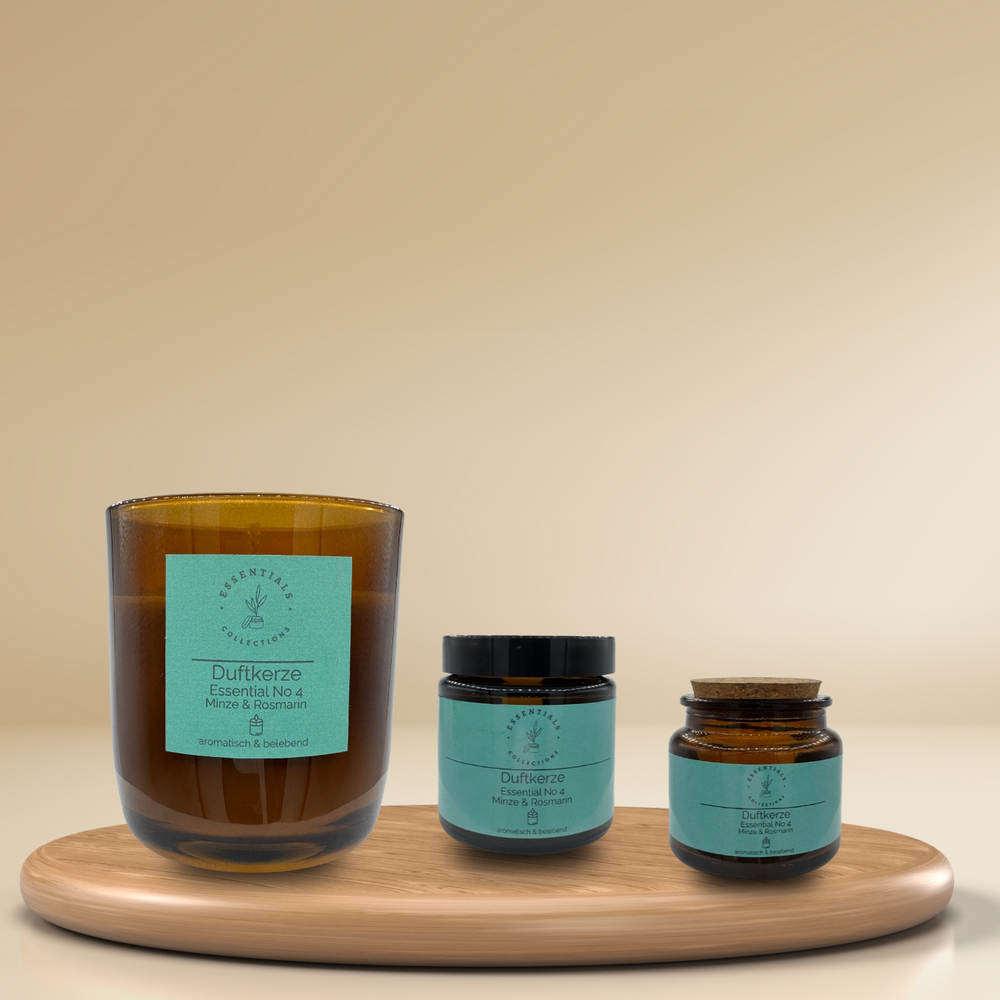 Erfülle deinen Raum mit der erfrischenden Klarheit von Essential No 04– Minze & Rosmarin, einer handgegossenen Duftkerze aus reinem Sojawachs. Kühlende Minze trifft auf die aromatisch-herbe Note von Rosmarin und schafft ein vitalisierendes, krautig-frisches Dufterlebnis, das den Geist belebt und Leichtigkeit in jeden Raum bringt.